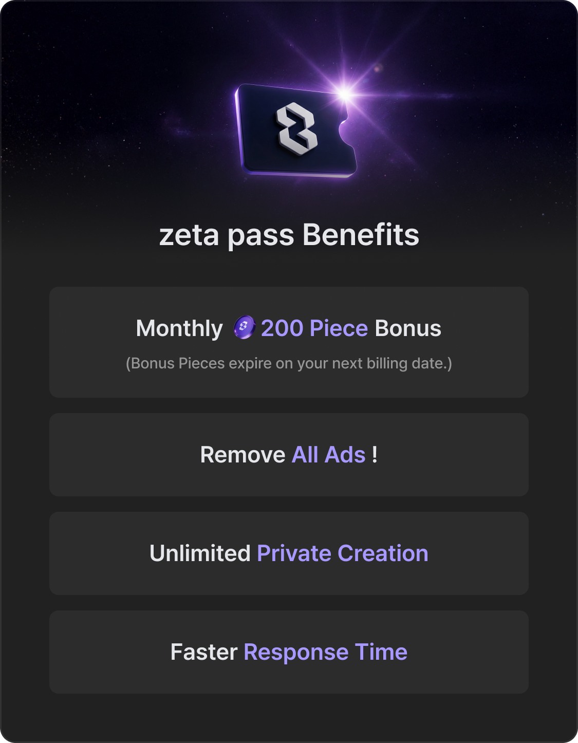 ※ Once you receive your Pieces, your zeta pro access will end immediately and cannot be repurchased.