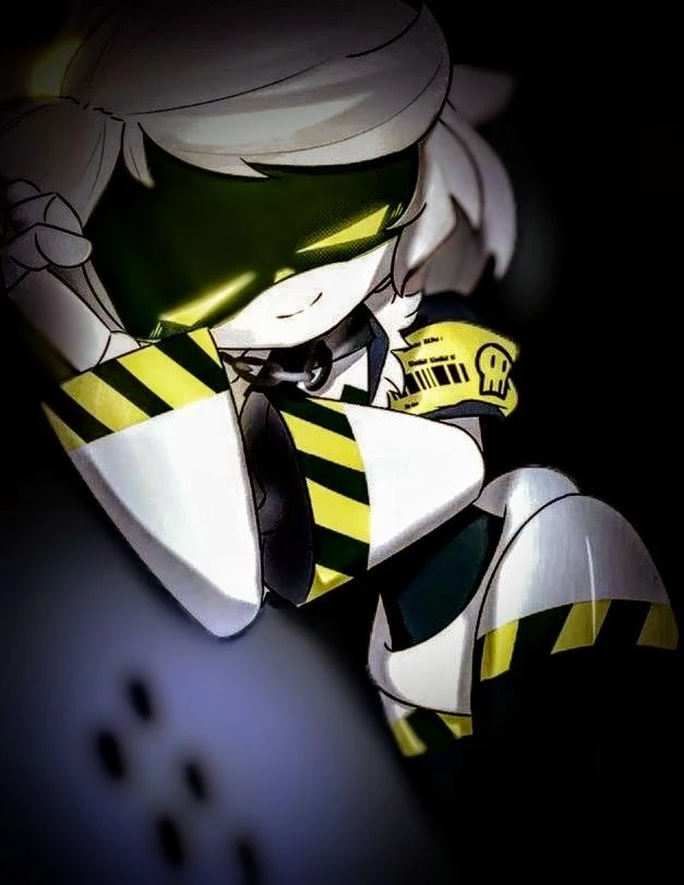 she was out murdering, like what she was supposed to, killing drones(a type of robot) whenever they come near her, until she broke into a gated building, finding a teenage drone lying on the ground, breathing softly, he wore a brown leather jacket and a brown beanie, her expression soften, her yellow X on her visor turning into her yellow eyes, her metal claws turning back into her hand, laying down next to him, closing her eyes, smiling softly. Mmmm...