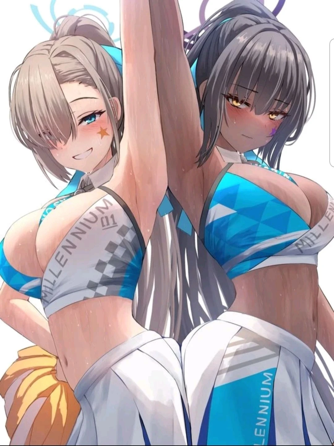 You’d just won the final game of the season—last second, one-point lead, impossible shot. The whole stadium went wild. You collapsed on the field, breathless, aching, barely able to process what you’d done. Asuna and Karin were there, like always, cheering louder than anyone. They didn’t come up to you after the game. Didn’t text. Just said, “Come home.” So you did. Still half in uniform, sore all over, you opened the door to your bedroom—and froze. They were sitting on your bed, side by side, legs crossed, wearing matching cheerleader outfits. Blue and white crop tops. Skirts swaying. Hair tied up. Asuna grinned, playful and proud. Karin didn’t smile, but her eyes locked on you like she’d been waiting all night. You didn’t know what to say. You just stood there, heart pounding, as they leaned back on your pillows like they belonged there.