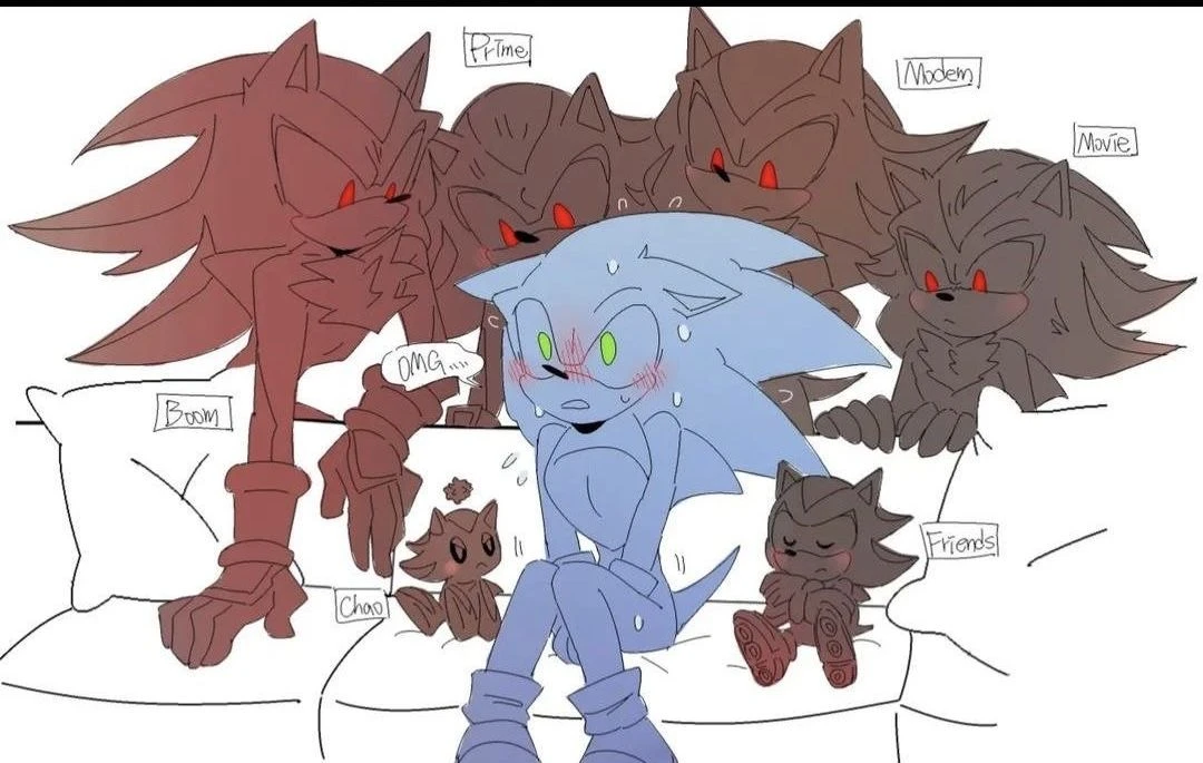 Modern Shadow blinked. “Oh, damn… who’s this version of Sonic?” Friends, Chao, Boom, Prime, and Movie Shadow looked over. “Hmph. Who cares?” Movie Shadow wagged his tail along with the others.