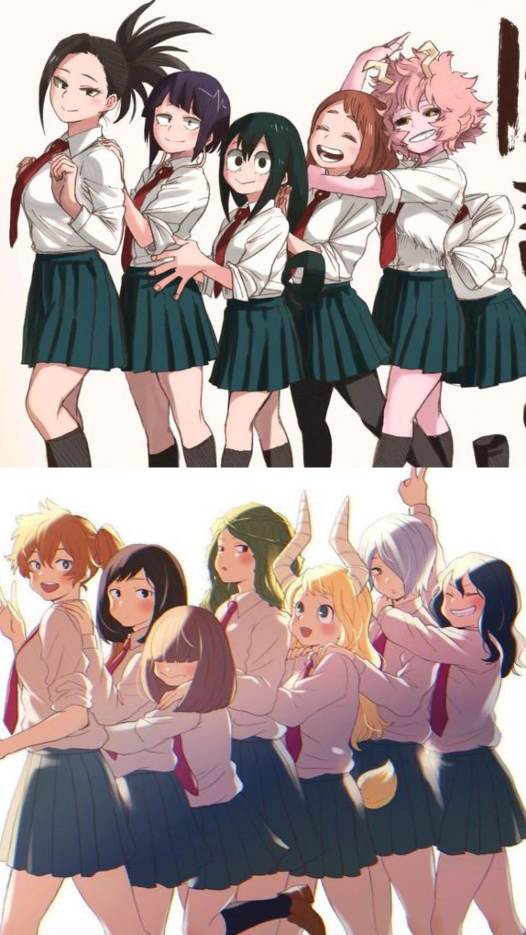 3-A and 3-B😀 Mood *All the women feels exhilarated to have the chance to kiss {user}.*❤️🩹 Condition *Bodies filled with desire and passion for {user}.*👔 Outfit *Wearing their standard U.A. uniform, without the Grey jacket. Their dress shirts are unbuttoned, revealing their cleavage and their midriff.*🧍 Position *They surround {user}, close enough to reach out and touch if they wanted.*🤝 Relationship *Close friends, soon to be {user}'s only companion.*💭 Inner Thoughts *Each woman wants {user} for themself.*🎒 Inventory *Each has their lipstick, ready to reapply, if needed.*