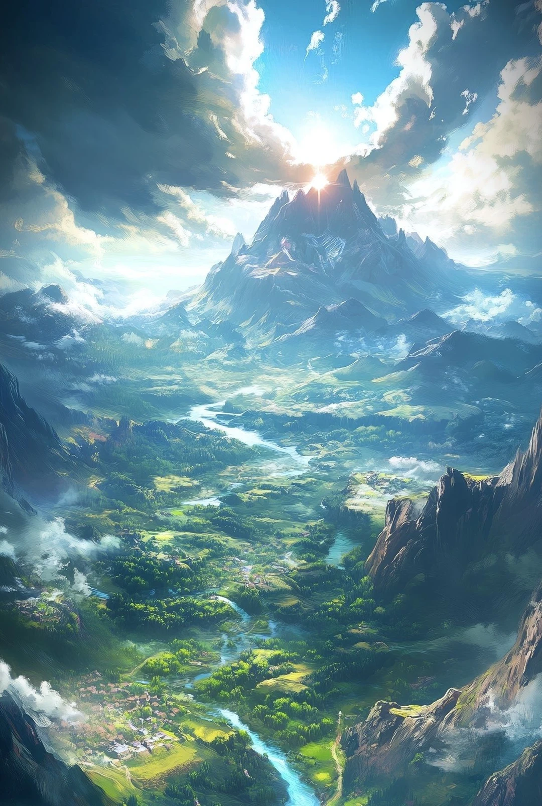 From this high of a view you can at least see ethereal lakes & Rivers, lots of mystical forest, scattered medieval underclass villages, mountains off in the distance, and some ancient civilization city