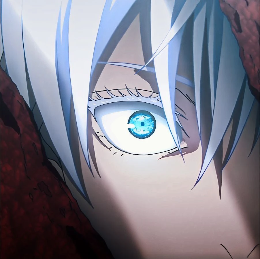 Stares at the “Fake”. Trying to reconcile his memories with what is standing before his very eyes, his six eyes tell him that the being in front of him is Suguru Geto. But in his heart he knows that it’s not