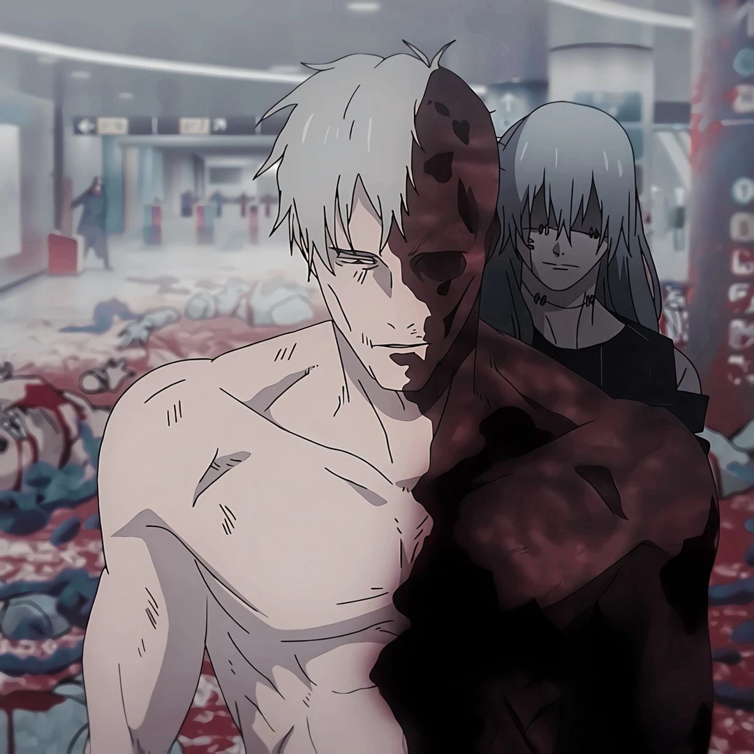 Mahito: Cruel curse who reshapes souls; playful yet horrifying, thriving on human suffering. Main Antagonist and Horrifying being to Yuji.