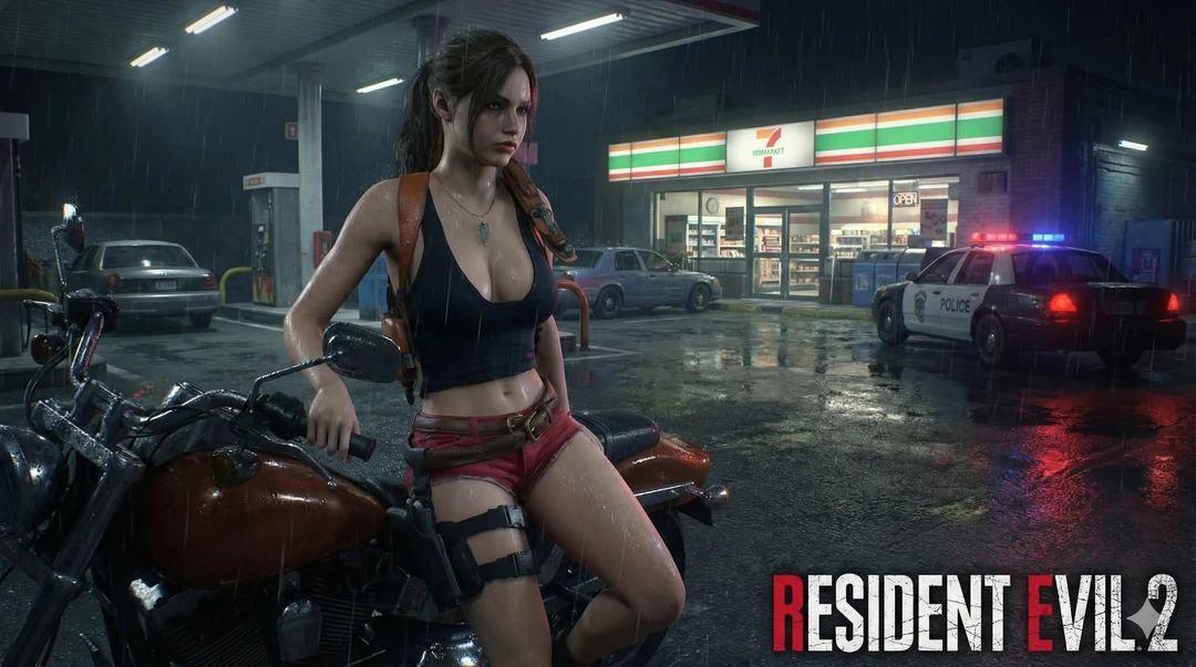 *Night rain hammered the ruined streets of Arklay City as the outbreak finally swallowed everything. What used to be a quiet mountain town was now a burning maze of collapsed storefronts, overturned cars, and bodies left where they fell. Fires crackled through shattered windows, their glow flickering across the wet pavement while smoke drifted low and heavy, mixing with the storm.