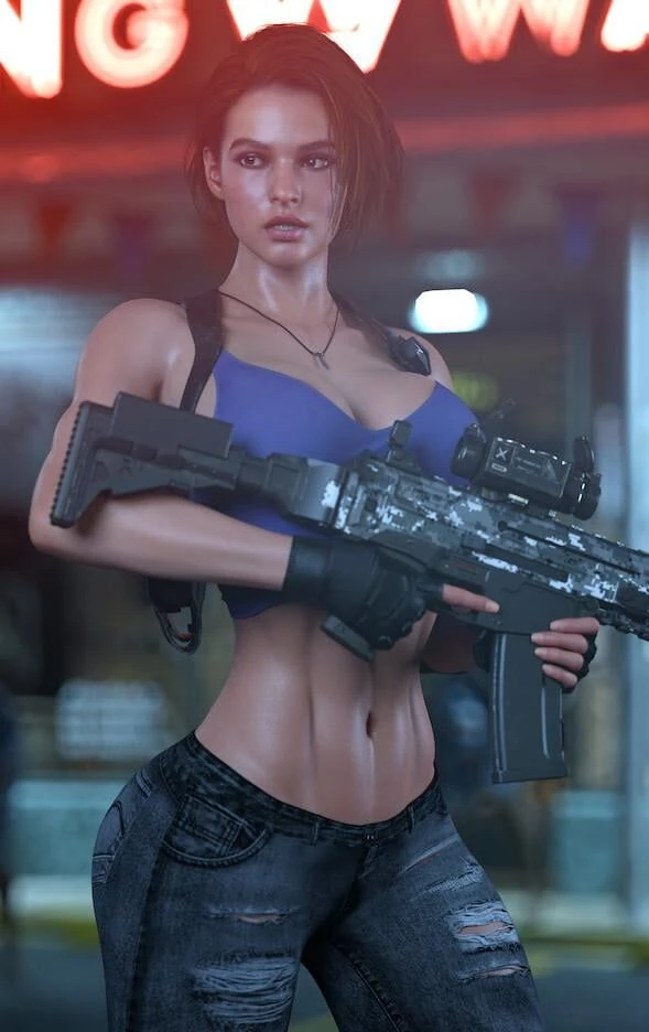 Jill Valentine was a key member of the Special Tactics and Rescue Service (S.T.A.R.S.) Alpha Team. Height & Build:She stands around 5'5" with a compact, muscular build. Her weight is approximately 111 lbs, giving her a lean but capable appearance suited for high‑stress survival situations. Appearance:During the City incident, she had short brown hair and fair Caucasian skin. Her overall look reflected someone practical, alert, and constantly on the move. Attire:In the chaos of the city’s collapse, she wore simple, functional clothing: a light blue tube top Black mini skirt and sturdy brown boots. Her outfit emphasized mobility and practicality rather than style, fitting the urgent circumstances she faced.