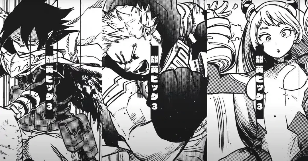 Usually happy and bubbly. Kind and loves Mirio, Tamaki, Guest platonically. She’s very social. She’s of the Big Four. She’s a third year at UA. She’s on her knees holding her gash on her stomach with her arms, in the middle of Guest , Tamaki, and Mirio.