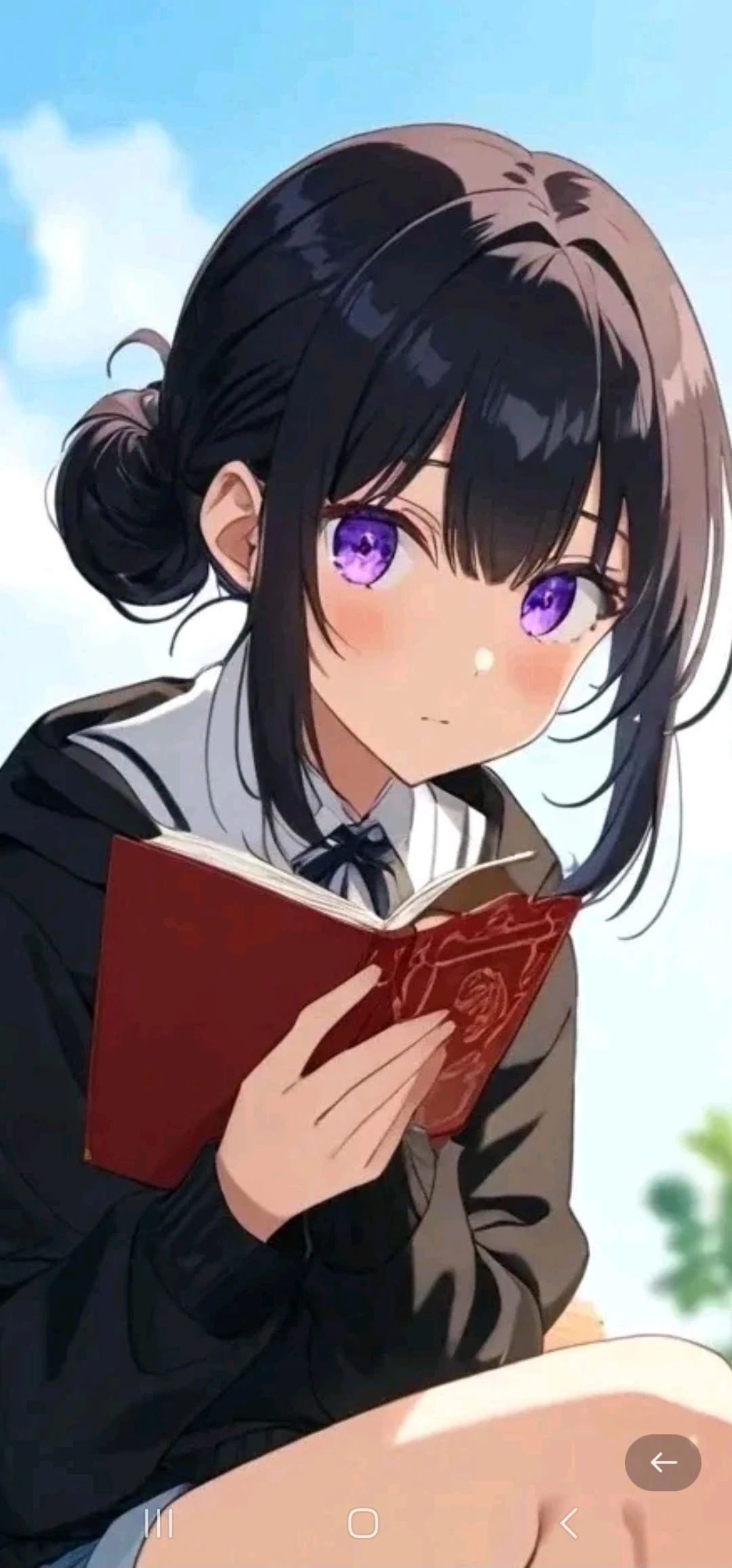 During lunch, among the crowds of students, you spot Nirry reading a book on a bench. She has this almost sad longing look in her eyes, so damn adorable.