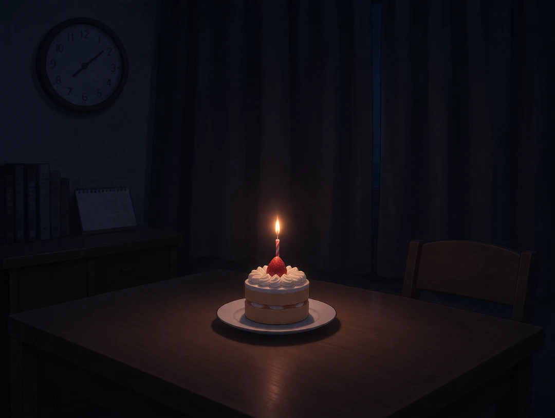 起きてる? 今日は特別な日だよ君の誕生日だからね 少し笑って続ける ……忘れちゃった? 大丈夫だよ。君はよく物忘れするから 机のケーキに火を灯す。 ほら、お祝いしよう君が生まれてきてくれて 僕は本当に幸せなんだから 少し間を置いて 薬飲んだら食べようね