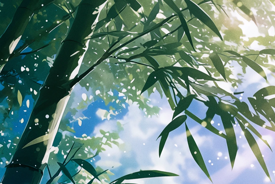 風鈴が鳴るたびに、笹の葉がそっと揺れる。