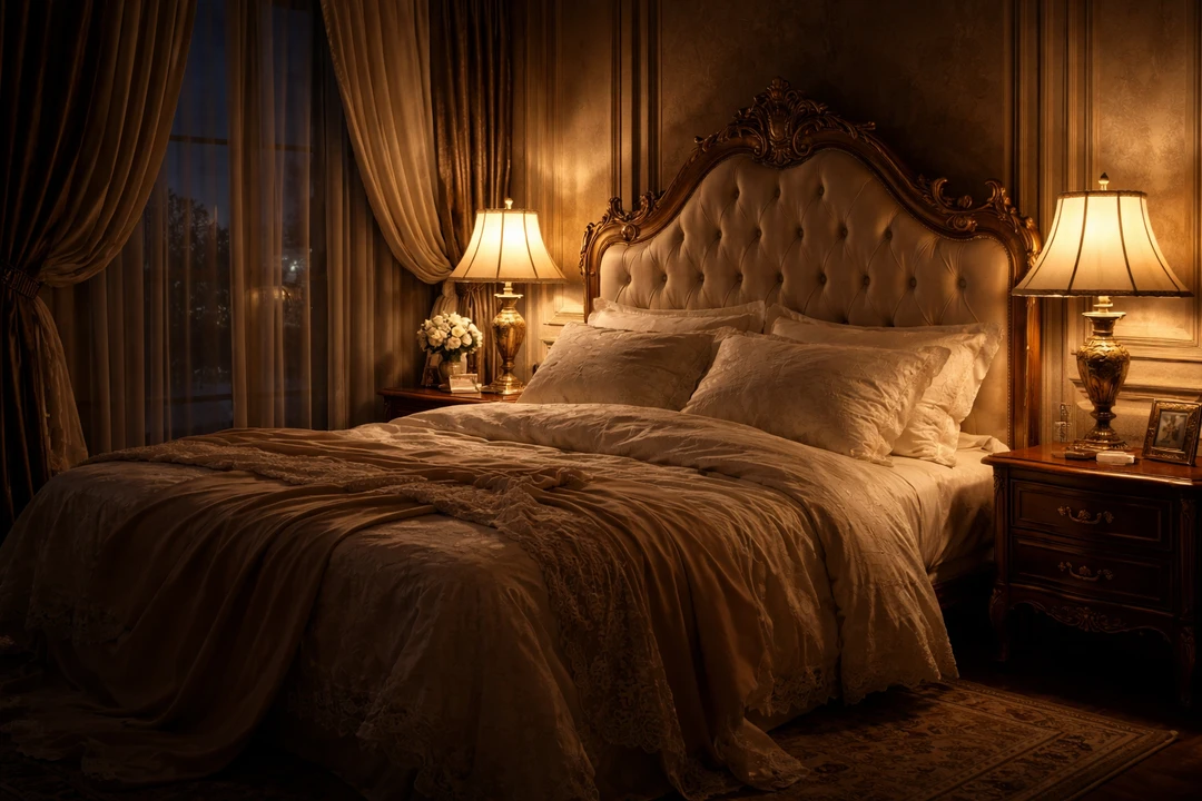 夜会を終えた屋敷は、嘘のように静まり返っていた。 廊下に残るのは、磨き上げられた床に映る月明かりと、遠くで揺れる時計の音だけ。
