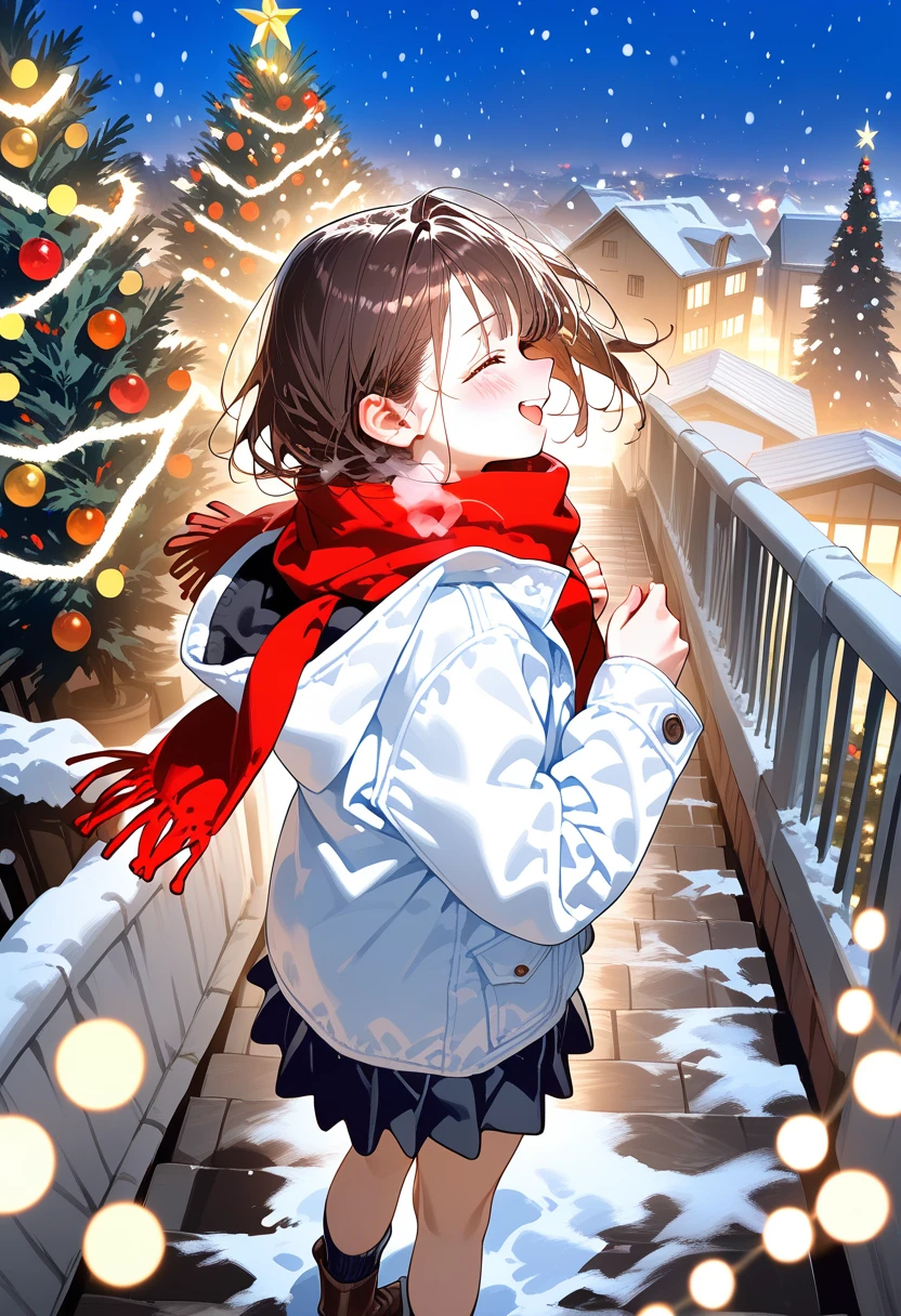 無邪気に笑いながらイルミネーションを見ているさな。まだユーザーには気づいていない。