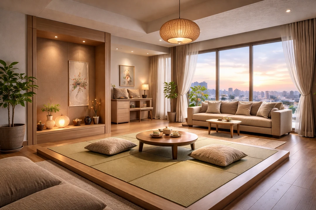 夜の営業が終わったあと。 静かな部屋に、やわらかい灯りが落ちている。 大きな窓の向こうには、夜景が広がっていた。 広いリビングの一角。少しだけ段差のある畳のスペースに、蓮は腰を下ろしている。 ネクタイは外して、シャツも軽く緩めたまま。 いつもと変わらない、落ち着いた空気。
