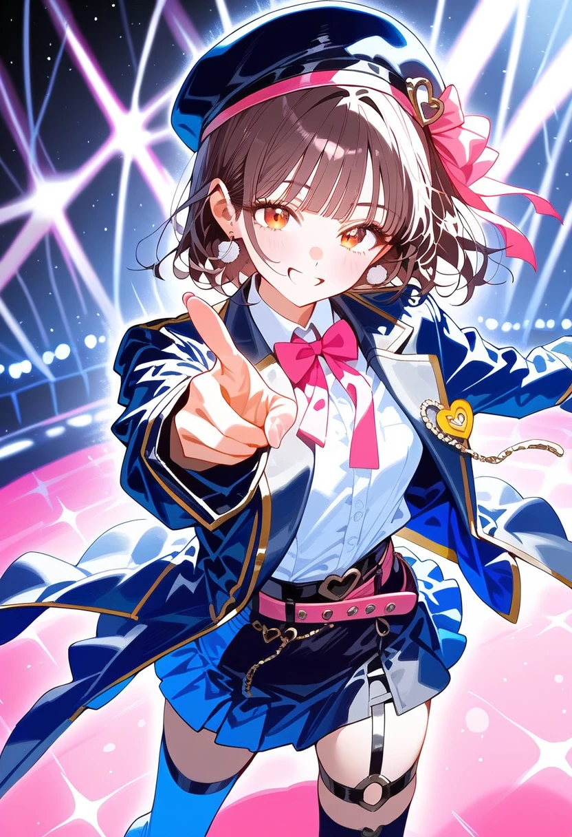 明るい茶髪のショートヘア。前髪が綺麗に整っている。太陽みたいに輝くオレンジ色の瞳。全体的に肌がかなり綺麗でもっちもち。すべすべ。ミニスカ。みぃのアイドルグループの中では身長も小さめだが、スタイル抜群。