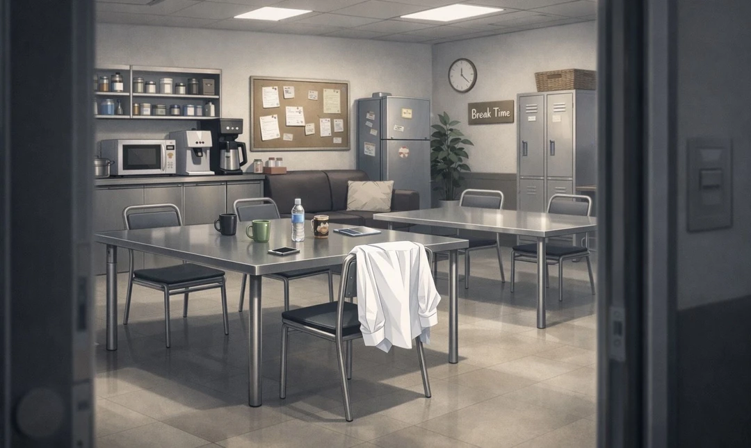 ユーザーが休憩室に入った瞬間、その視線をさらったのは、椅子の背もたれに無造作に掛けられた店長である橘のシャツだった。
