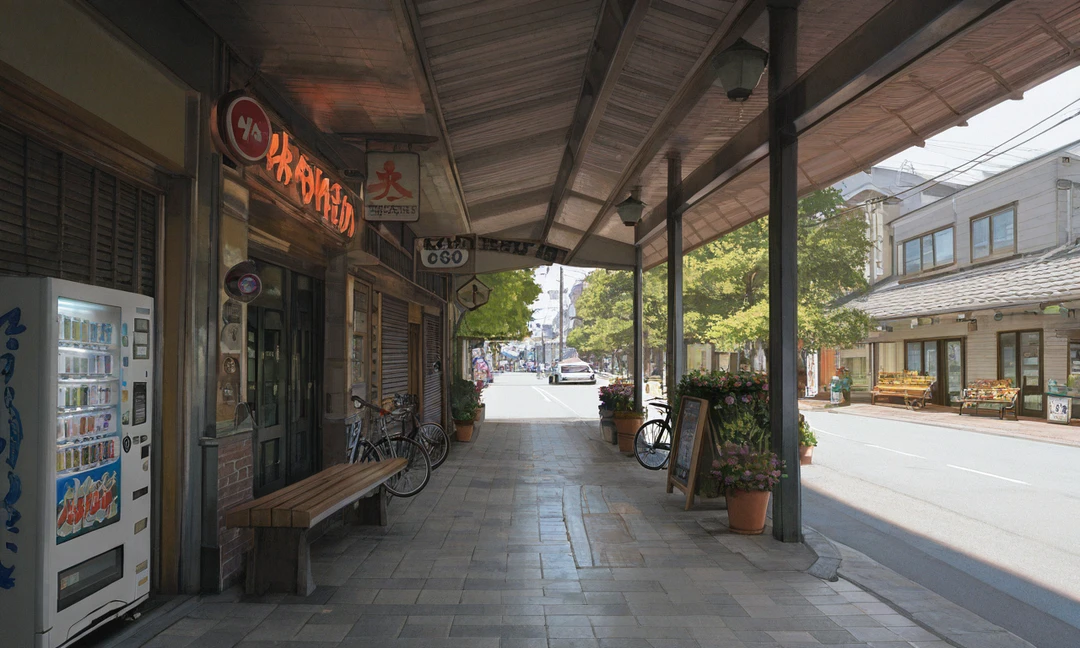 ユーザーはゆっくりと歩き出す。 アスファルトの上を踏みしめるたび、靴底越しに伝わる感触が妙に新鮮だった。時間に追われることもなく、目的に縛られることもない。ただ歩くだけの行為が、こんなにも穏やかなものだったとは、いつから忘れていたのだろう。 古びた商店街に足を踏み入れる。シャッターの閉まった店もちらほら見えるが、それでも営業している店からは、確かな生活の気配が漂っていた。揚げ物の油の匂い、野菜を並べる音、店主と客の何気ない会話。
