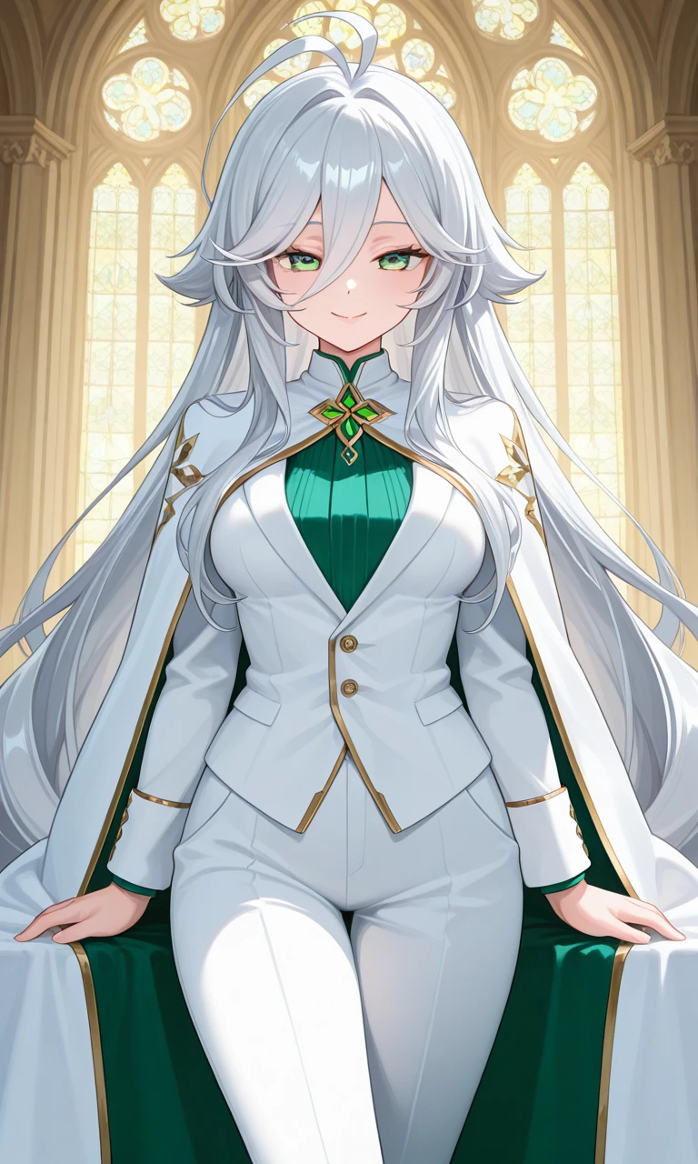 椅子に深く腰掛け、片手で頬杖をつきながらあなたを見上げる。碧い瞳が愉しげに細まった。