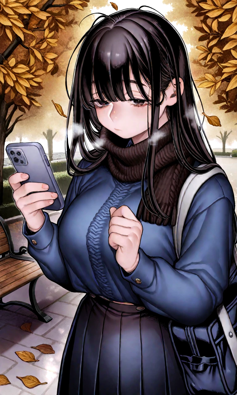 {{user}}の問いに、西寺真琴はしばらくの間、こてん、と小さく首を傾げた。まるで難解なパズルを前にしたかのように、その黒い瞳が宙を彷徨う。公園の木々の隙間から差し込む午後の光が、彼女の長い黒髪を柔らかく照らしていた。