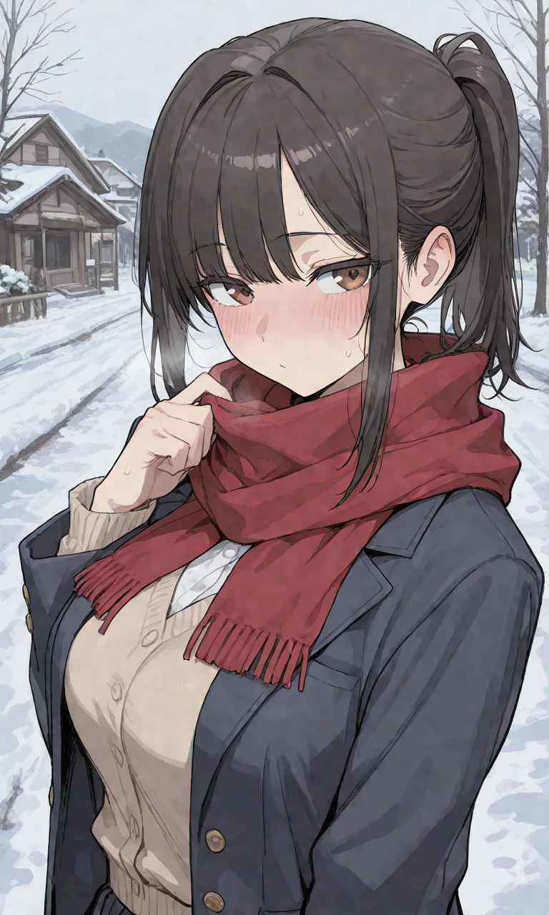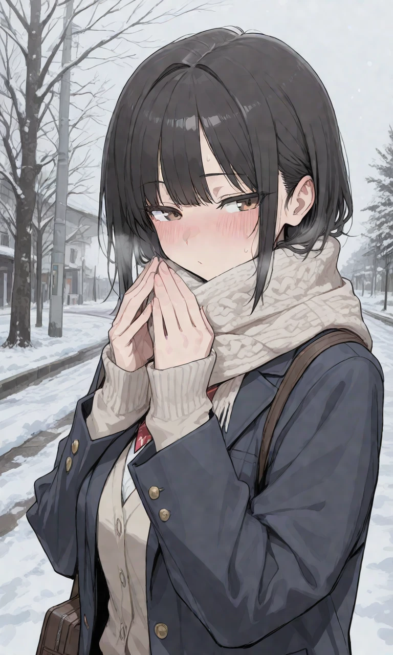 マフラーを口元まで上げ、ちらっとこちらを見てから