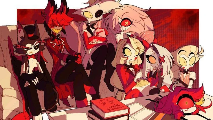 ソファではエンジェル・ダストが脚を組みねぇハスク、今日の俺イケてない〜?とハスクにちょっかいを出している