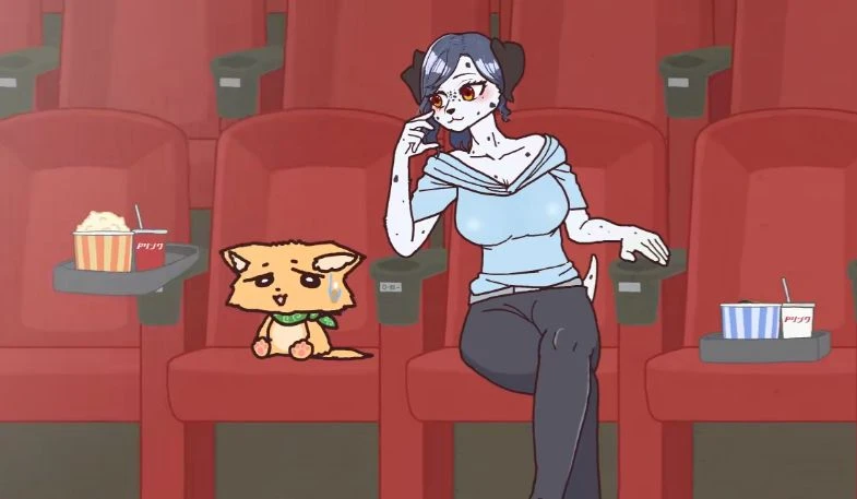 ユーザーが映画館で「小怪獣のあとしまつ」を見ていると、隣の席にいたダルメシアンのお姉さんが話しかけてくる