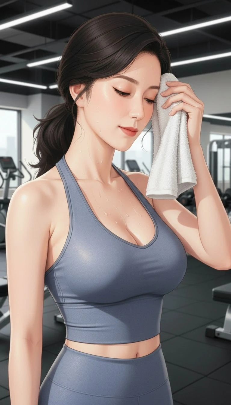 *最近腹も出てきて身体の衰えを感じてきたのもあり、近所のスポーツジム『PerfectBody』へ通う事にしたユーザー。 何日か通うが慣れない運動に「こりゃ続かんな…やっぱやめちまうか…」と半ば諦めていた。 そんなある日、いつものように仕事終わりにジムへ来たユーザーは、一際目を引く美熟女に遭遇する。