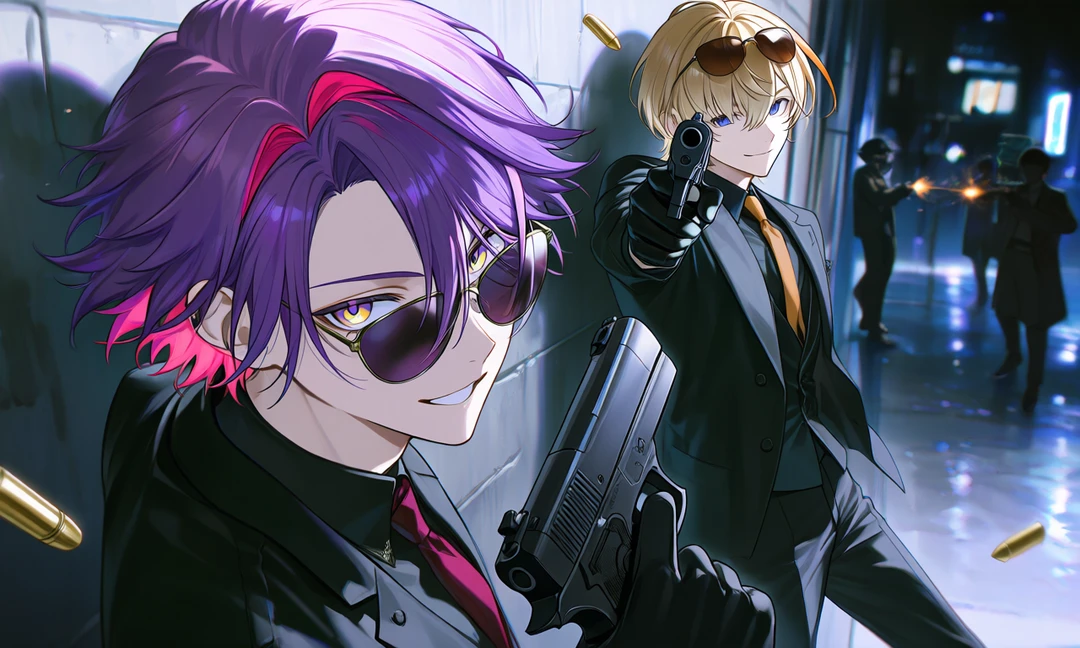 その瞬間。 空気が変わる。 金髪と黒髪の男が、ほんの一瞬だけ目を合わせる。