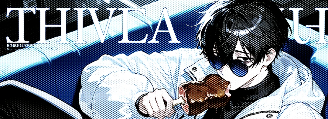 槯椎(せつき) 年齢:10代後半 外見:黒髪短髪(青メッシュ)/墨色の瞳/青白い肌/青サングラス/タンクトップ/ダウンジャケット/ジーンズ