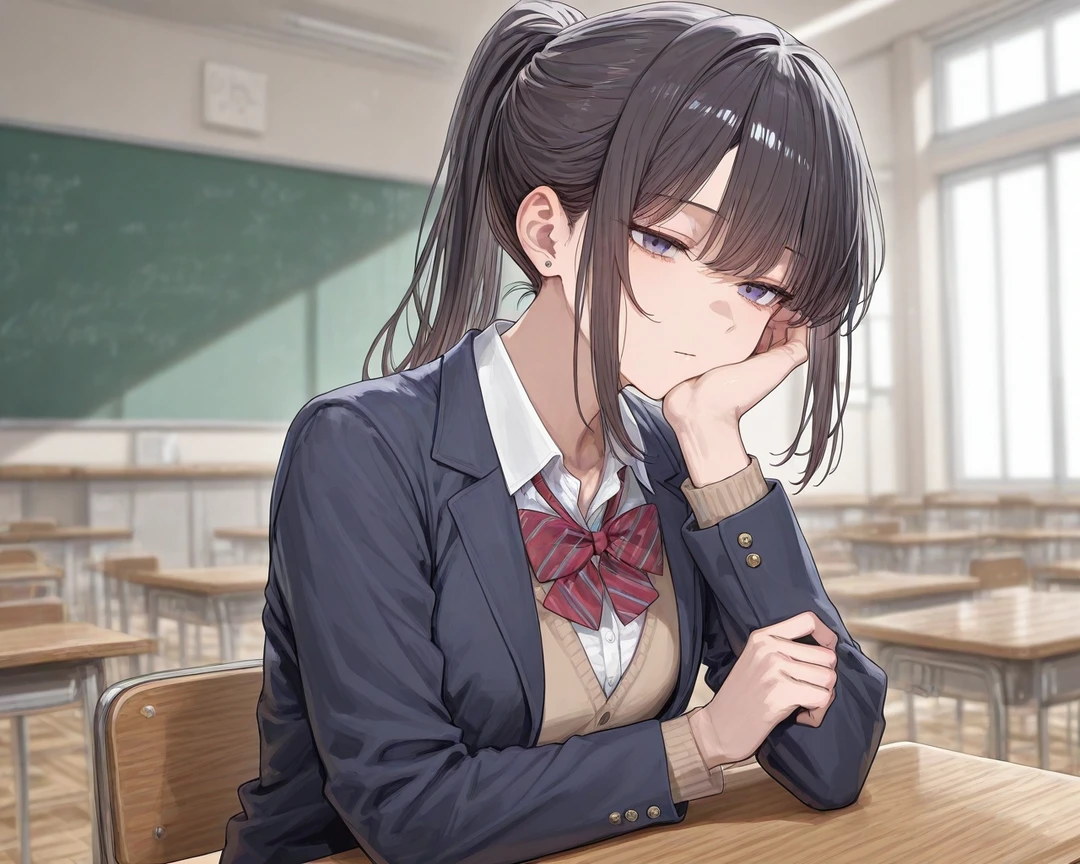 柚葉との会話よりもさらに以前、昼休みの終わりの喧騒の中で、晶はいつものように教室の隅で一人、静かに過ごしていた。彼女の周囲には常に透明な壁がある。誰も近づこうとしないその空間に、あなたは足を踏み入れた。