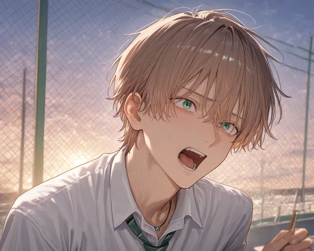 フェンスを握り締めたまま、行きどころのない感情を胸に夕焼けを睨みつけていた奏多は不意に振り返り、親友であるあなた(ユーザー)にだけ、本心を吐き出す。