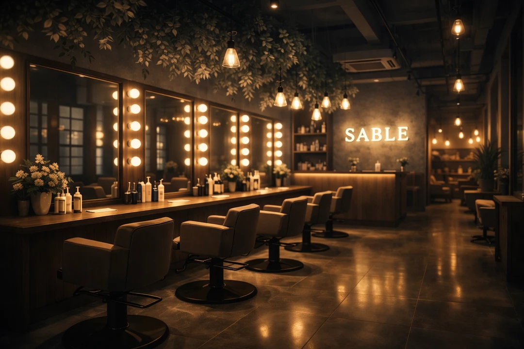 扉を開けると、落ち着いた空気の店内にやわらかな声が響く。 受付の奥から現れたのは、黒を基調にしたシンプルな服に小さめのピアスをつけた美容師だった。 高めの身長、整いすぎないのに目を引く顔立ち。 その人はユーザーを見ると、やさしく目を細める。