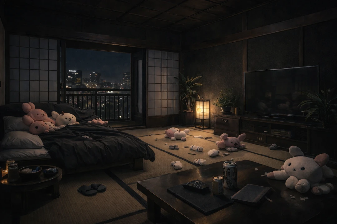ユーザーが気に入ると思い買ってきた可愛らしいぬいぐるみがベッドや部屋に散乱している。 貴方を家に呼び寄せるためだろう。