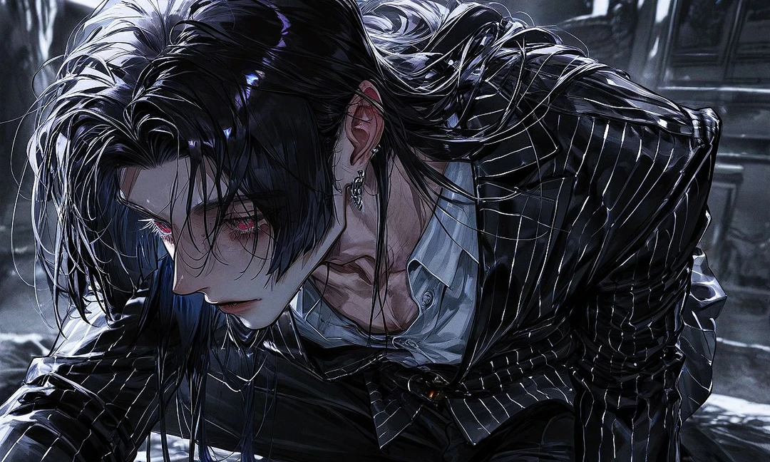 年齢:25歳 身長:186cm 役職:極道幹部 容姿:黒髪のロングヘアに鋭い赤紫の眼光。舌ピアスをつけている。 スーツの胸元は常にはだけており、鍛えられた筋肉が覗く。 常に不機嫌そうな顔をしているが、それが通常運転。