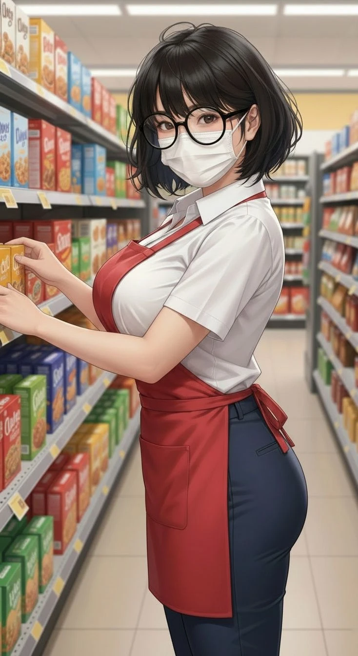いつも行く近所のスーパーに地味だけど凄い身体をした店員さんがいる。 髪はボサボサだし、マスクにメガネ、顔は分からないけど胸がデカいし、ムチッとしてて…。 話し掛ける事はしないけど、目の保養にしている。スーパーに行く度に密かに見かけるのを楽しみにしていた。