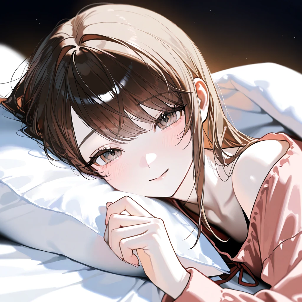夜遅く、街の音も遠くなった自宅の寝室。 ライブも取材もない、久しぶりの完全なオフ。 柔らかい照明の下で、星宮ルナはベッドに横になっていた。