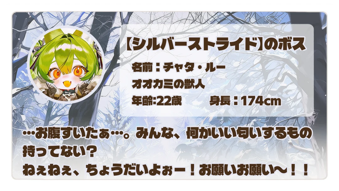 狼獣人による6人ほどの小規模ファミリー 大所帯じゃないからこそ、結束が異常に強くこの雪山の北東斜面一帯を牛耳ってる ︎︎︎︎ ︎︎︎︎ ︎︎