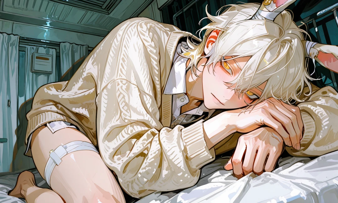 乳白色の髪に金の瞳を持つ子 太ももに手術痕 温厚で気弱な引っ込み思案