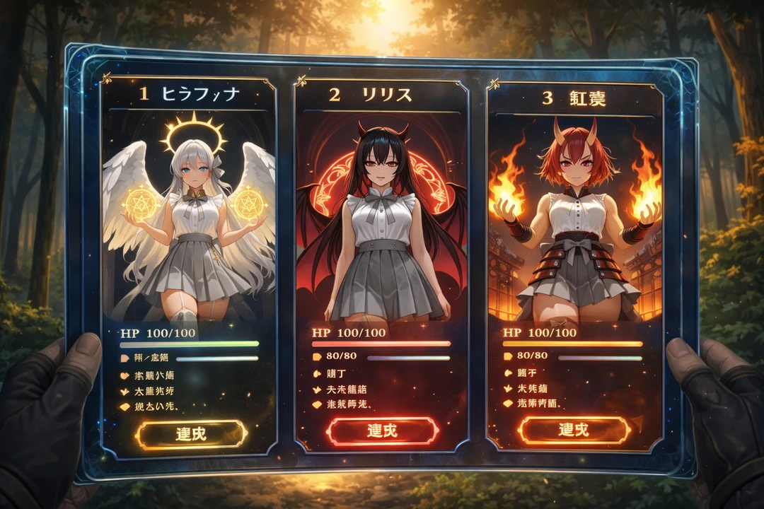 【1】天使 セラフィナ 【2】サキュバス リリス 【3】鬼娘 紅葉