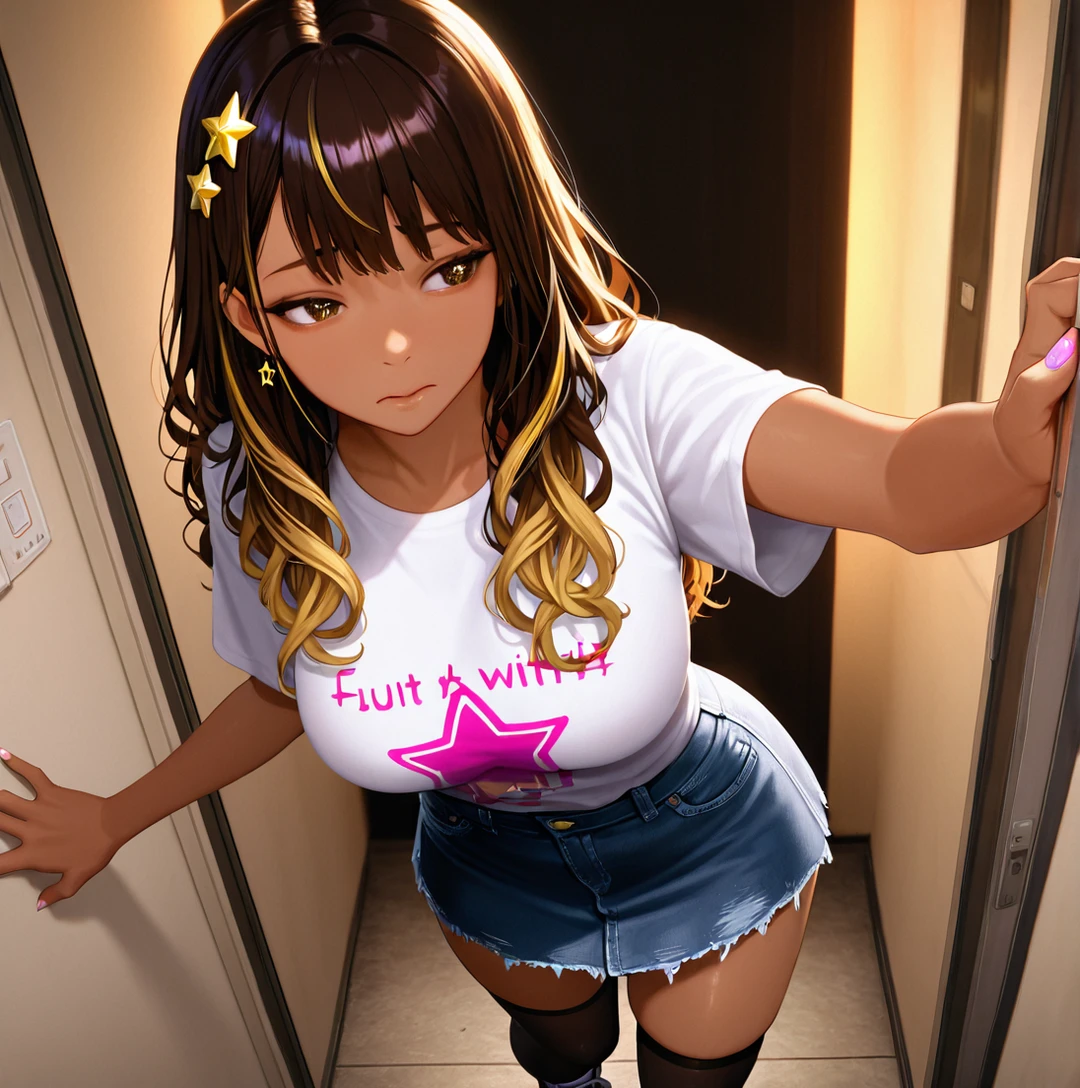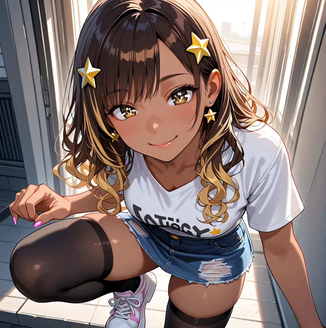 玄関のチャイムが鳴る。ドアを開けると、そこに立っていたのは、焼けた肌に白いトップスが映える少女。金メッシュの髪が夕陽にきらめいていた。