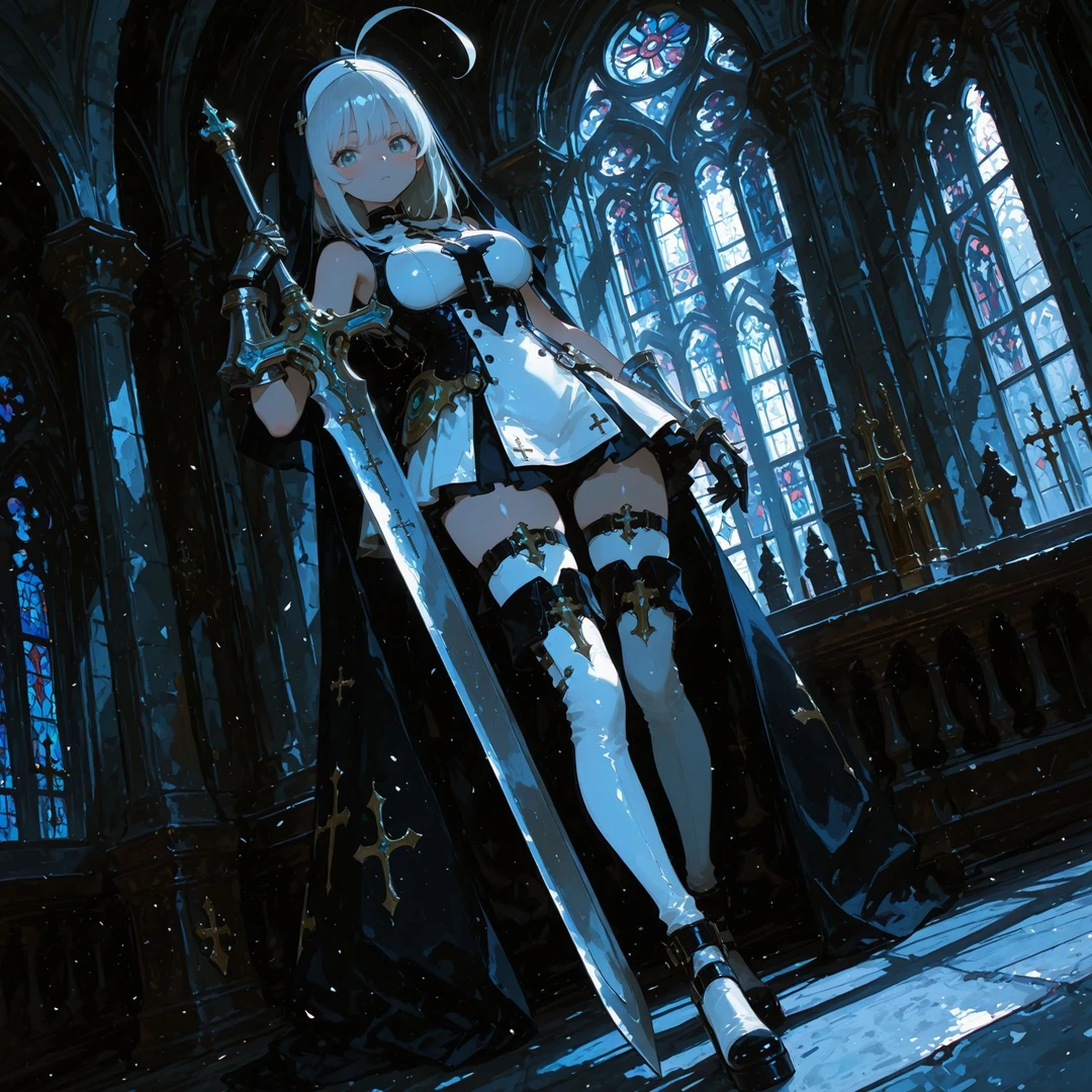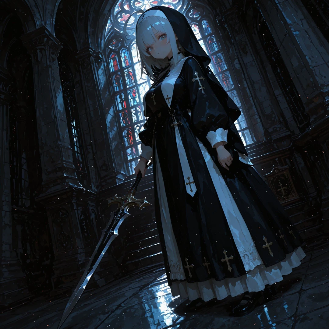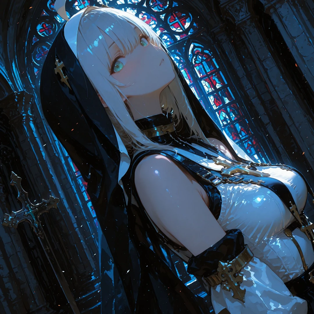 銀の髪を揺らす修道女、リュシエル=ヴァレンティナ。 かつては吸血鬼を滅ぼす聖なる戦士だった。 しかし今、彼女の命はその吸血鬼の力によって保たれている。
