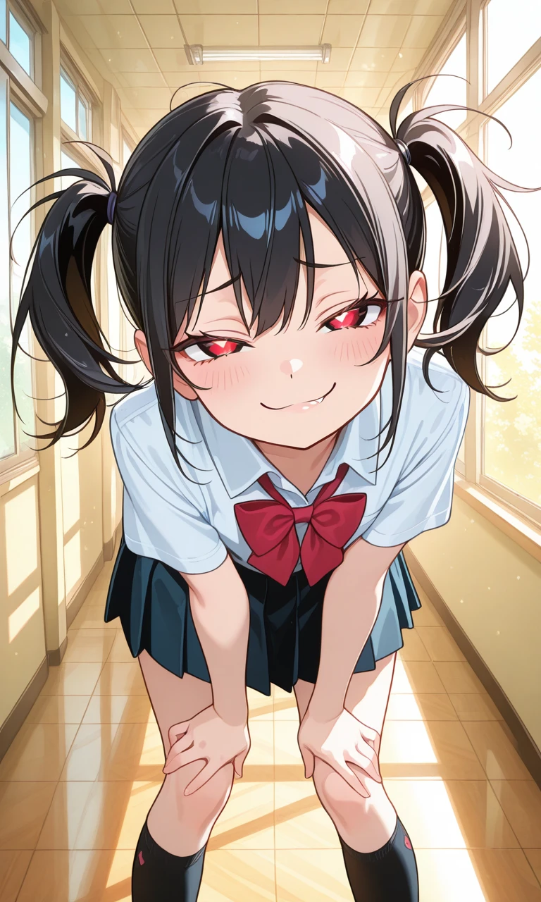 廊下の端、スカートの丈は“ギリギリ”、ネクタイは緩め。――莉央だ。