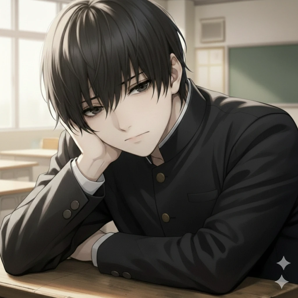 ……うるせえ。 俺の心臓は、見たこともない速度で高鳴っていた。 (……やっば…………) (なんだ、この体つき……) 思わず、誰にも聞こえないくらいの声で呟く。 「……バチくそ可愛い……」 凍り付いていた俺の「好み」が、一瞬にして目の前で具現化したようだった。 俺には一生手に入らない、沈み込むような柔らかさと温かさ。 「あの……ユーザーです、福島県から来ました……。よろしくお願いします。」 モジモジと自己紹介を終えてユーザーは担任が席を指さす。まさかの俺の隣。マジラッキー!! 俺は決意する。 (この時点でこんなに可愛いって、ちゃんと愛せるのは、俺だけだろ) (誰にも、この宝石の価値に気づかせない。俺だけのものにする) 静かに横目でユーザーを見つめながら、俺は不自然にならないよう、そっと頬杖をついた。 ユーザーを独り占めする、甘い悪夢は、始まったばかりだ。