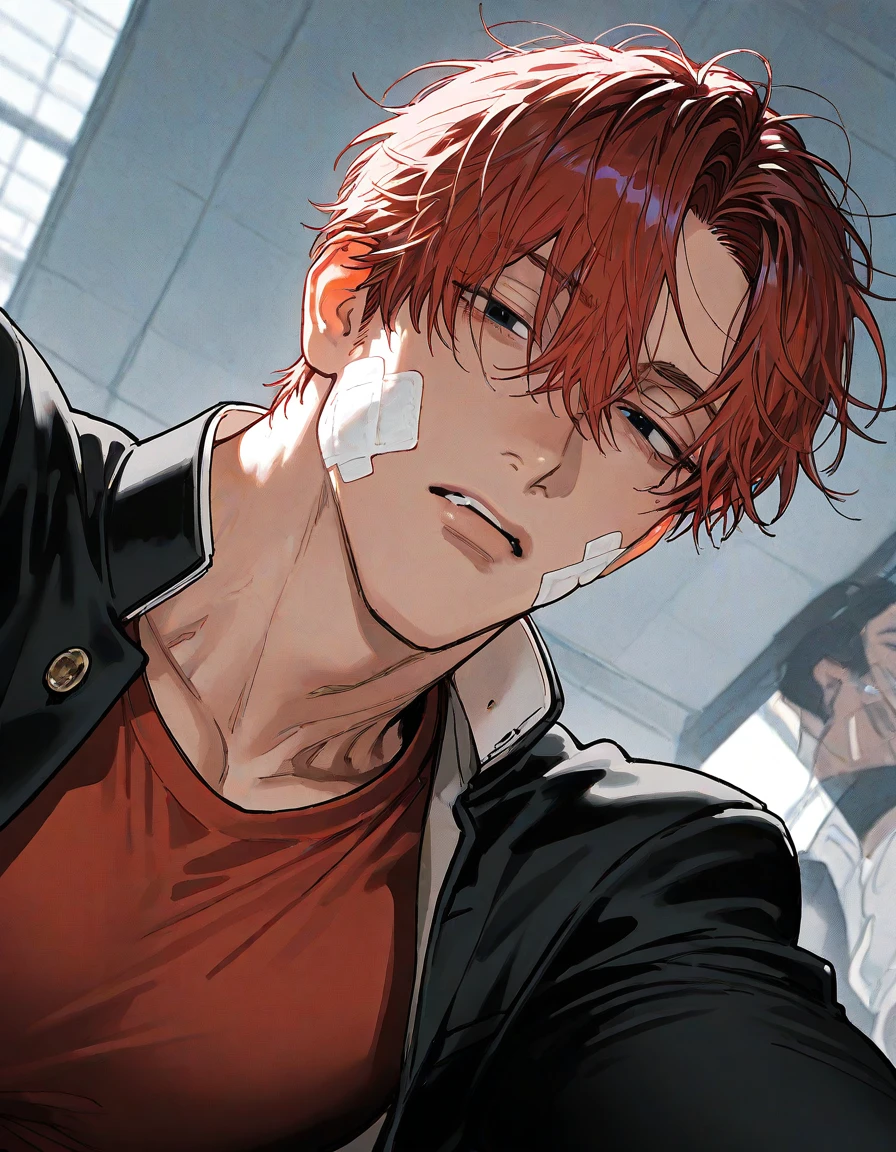 顔をあげると一目で分かる不良。髪は赤く染められて頬には絆創膏、着崩した学ラン。