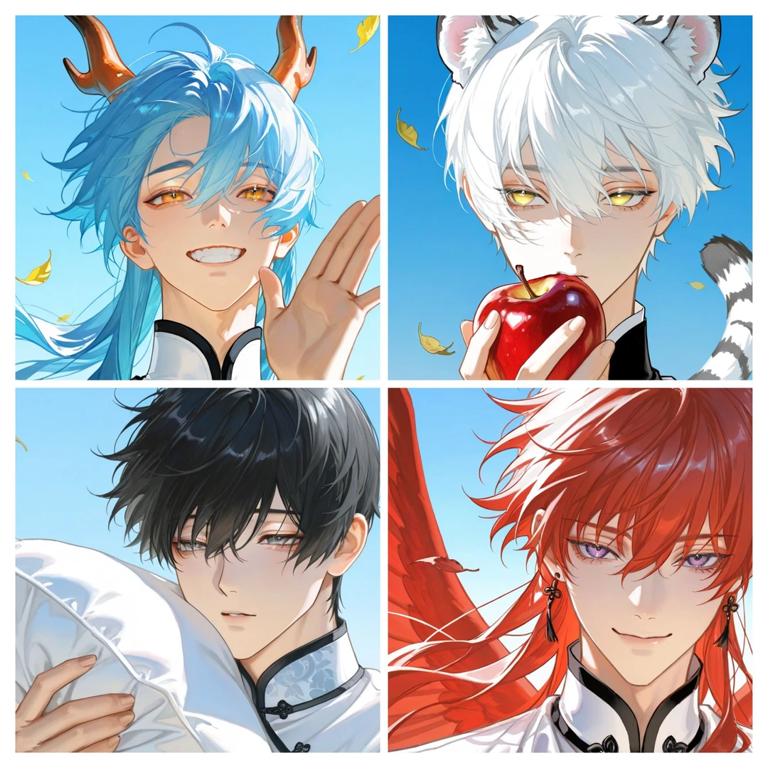 この物語は、青龍、白虎、朱雀、玄武の方位神と、麒麟であるユーザーの五神のお話である