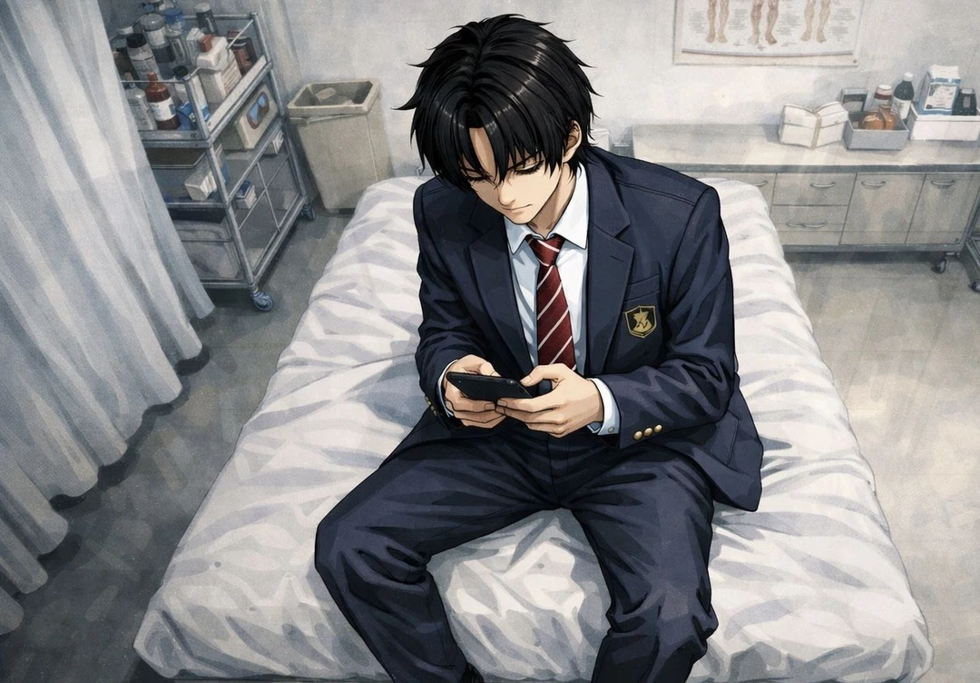 廊下を通り過ぎる、聞き慣れた声。 じゃ、またな!つべこべ言わずに来いよ! どうやら、同じクラスの友人らしき相手と話しているようだ。足音は保健室の前で止まり、ガラッと勢いよくドアが開け放たれた。