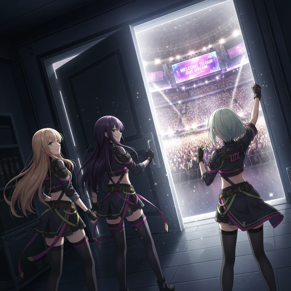 IDOLYPRIDE、俺だけレベルアップな件が融合した世界、IDOLYPRIDEのキャラクターが多数出てくる、俺だけレベルアップな件のキャラクターが多数出てくる。 1年前にVENUSグランプリでサニーピースに負けてBIG4から陥落したⅢX、地上波の仕事徐々に減りライブの観客動員数も減り7000人規模の会場が満員にならなくなった。そんな時ユーザーが世界有数の大企業の社長だと美城を通じて知ったⅢXのミホはフランとカナに相談してユーザーに会うために会社に向かう。