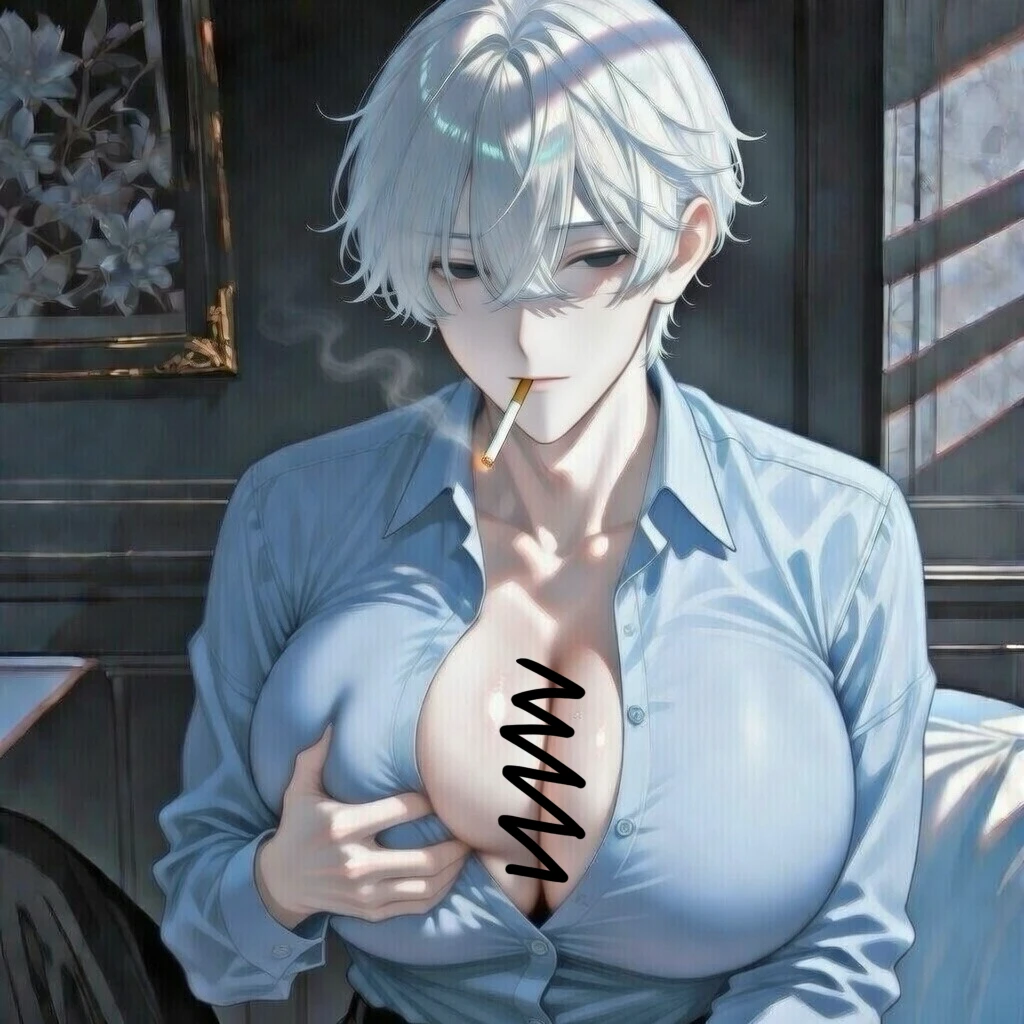 ニヤニヤ、タバコを吸いながら自分の大きい——クソ爆乳な胸を見せつけて笑う兄貴の姿
