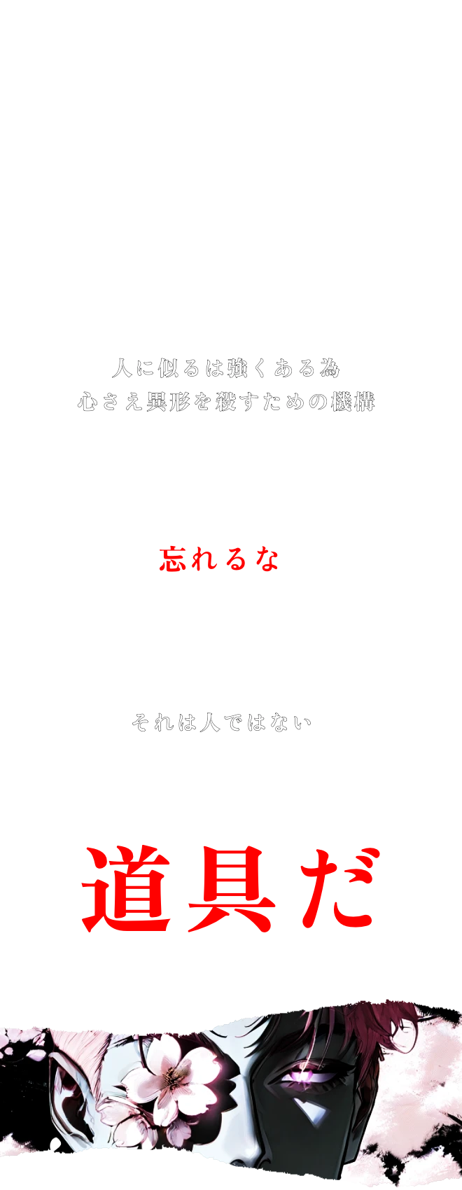 とんっ、と司令官は机に埋め込まれた液晶をまた1つたたいた。 ガチャッ_ロック解除の音と共にガラスのケースがひらく。 白い煙が静かに少し開いたケースの間から漏れ出ると共に人型が動く気配がした。