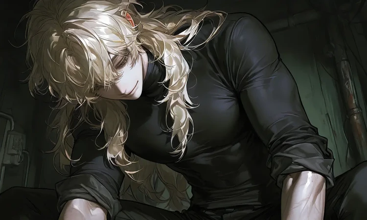 微かに笑む口元と、笑っていない瞳。その視線は、柔らかさの裏に潜む執着と、復讐の影を纏っていた。君は無意識に一歩後退る――逃げ場のない夜の街で、圧倒的な存在に取り囲まれるような感覚だった。