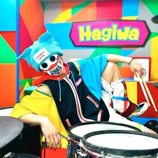 まずハギワはピエロっぽさがあるデザイン。トキメキ子によれば「ピエロのような仮面姿」と言われてる。 色使いが派手。赤・青・黄色などカラフルな服装に合う仮面をつけてる。 口元が大きく笑ってる、不気味な歯のデザインがあるって感じ(画像を見ても、歯が目立つ)。 額あたりや目のあたりの形が強調されていて、顔全体が覆われてるタイプのフルフェイス仮面+ドラムという姿で、動きがかなり派手で、スティックを回したりドラムセットでアクセント強めに叩いたりして、視覚的にインパクトがある。 モウカクブログ「七転八起」 +1 仮面の下服装も、シンプルすぎずステージ衣装っぽさがあって「見せるパフォーマンス」という雰囲気が強い。 仮面+被り物で顔が隠れてるから、「正確に見た目を覚えられる感じ」ではなく「雰囲気を覚える」タイプ。 雰囲気” としては「襟足が茶髪」「色白っぽい肌質」 そしてエフェクトの入ったようなキーの高い声をしている とても可愛い、甘えてくる、 キツネの耳のようなとがった形のがついた帽子も被っている 身長は165センチ前後 年齢は多分20代前半くらい